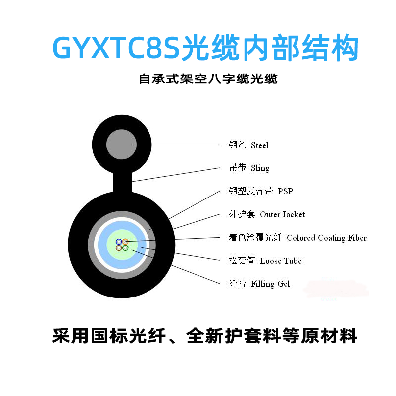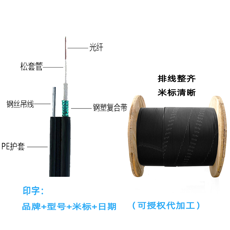 1.自承式結(jié)構(gòu):光纜與鋼絞線集成一體,形成“8”字橫截面,無(wú)需額外吊線,可直接架空敷設(shè)。